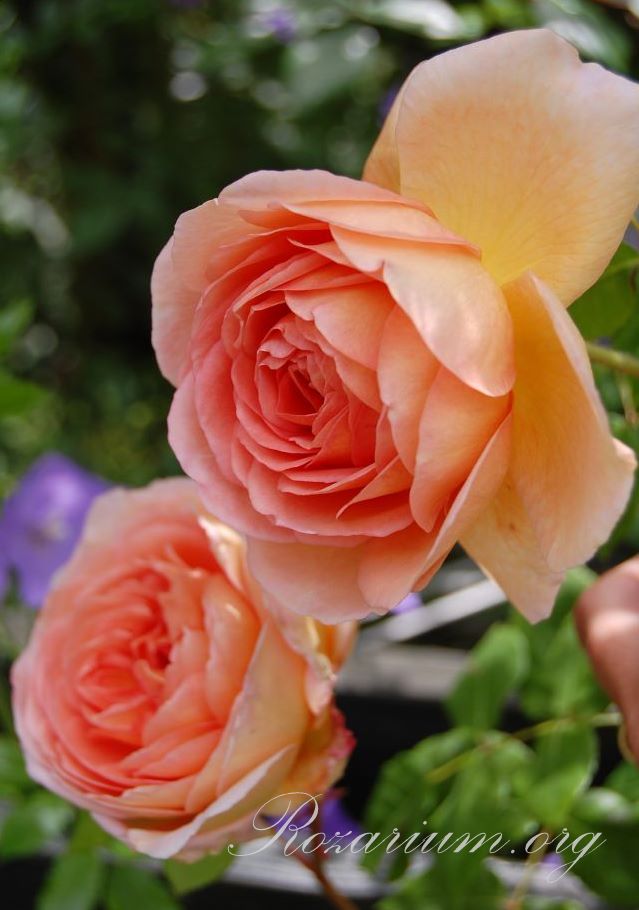 Bujny krzew kwitnący z małymi przerwami przez całe lato do jesieni, kwiaty pełne w kolorze różu, brzoskwini i żółci, zapach silny owocowy z ziołową nutą. Kwiaty utrzymują się do 5 dni, w upale szybciej przekwitają.