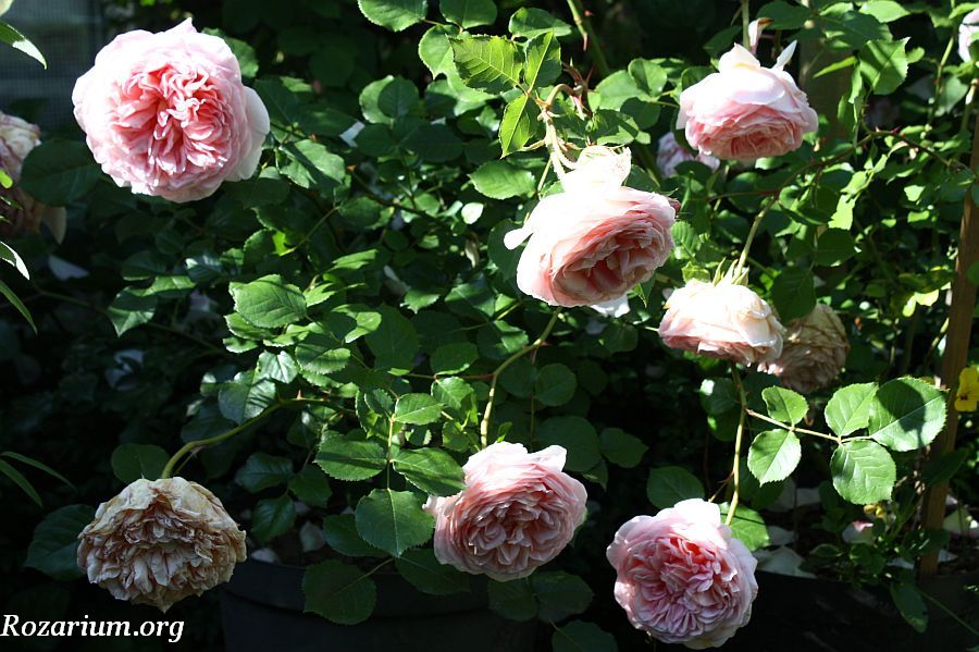 2. Nie potwierdzam, że wymaga dużo słońca. Wręcz odwrotnie. U mnie świetnie rośnie i kwitnie w zasadzie bez bezpośredniego oświetlenia słońcem (tzw. jasny cień, ang bright shade). Nie przyginam gałęzi do poziomu i nie zauważyłem, by było to potrzebne do obfitego kwitnienia. W trudnych warunkach mojego ogrodu jest to najdłużej kwitnąca róża i najlepiej powtarzająca. Odporność na mróz znaczna, ale niecałkowita – więcej na http://www.roses.webhost.pl/2008/03/witaj-swiecie/