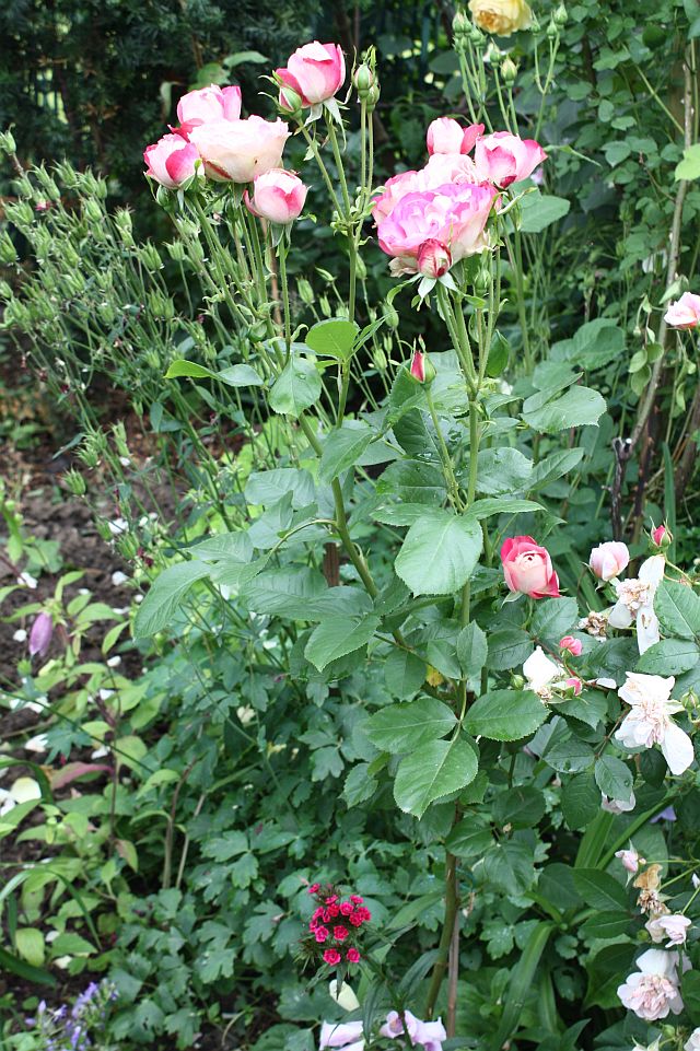 Krzew osiąga dość dużą wysokość, jak na róże rabatową: ponad 1,2m.