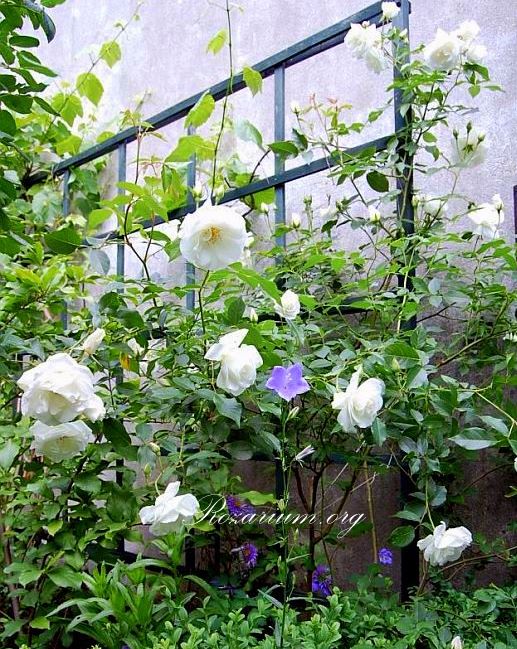 To róża o wyjątkowym uroku, w stylu róż romantycznych/nostalgicznych. Kwiaty wielkiej urody, zwiewne, delikatne, lekko zwisające w dół. Kwitnie nieprzerwanie od czerwca do mrozów. Znosi lekki półcień. Polecam ją, jako jedną z najlepszych białych róż pnących!!! 🙂