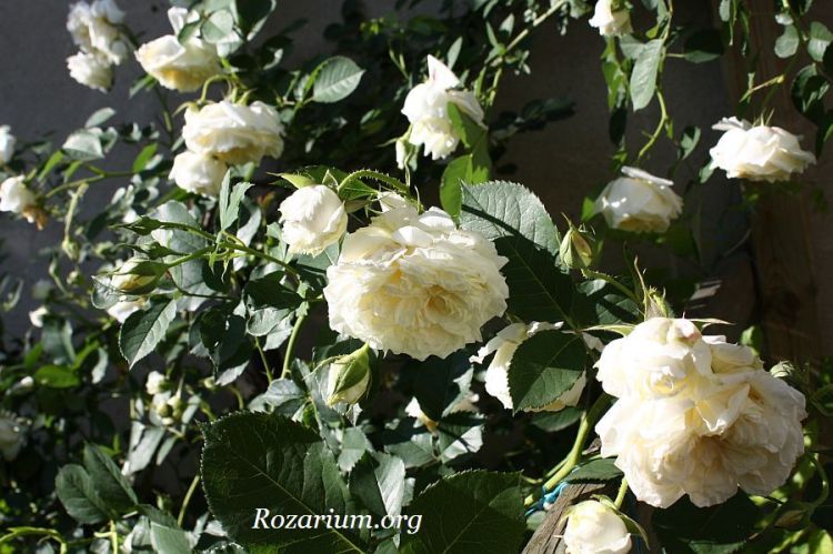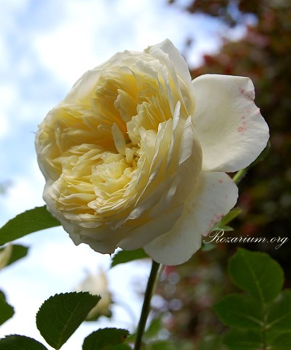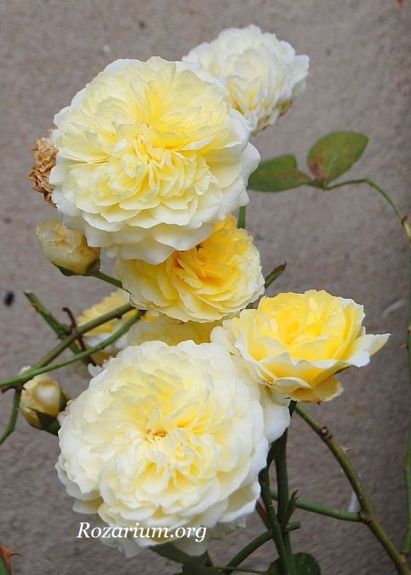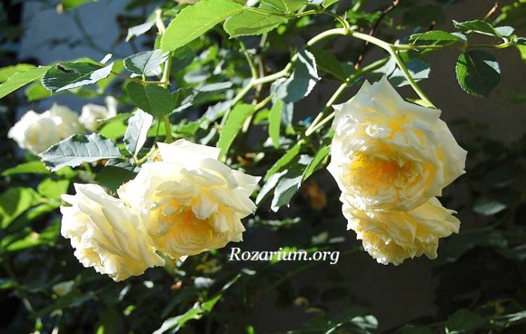 Synonimy: The Pilgrim, AUSwalker, Gartenarchitekt Gunther Schulze. Róża angielska Davida Austina. Wyjątkowy kwiat kremowo- żółty, pełny o rozetowo ułożonych płatkach, ciemniejszych im bliżej środka. Silnie pachnie. Pąki kuliste, ostro zakończone, na długich szypułkach. Kwiaty wyrastają po kilka w pęku na końcach pędów głównych i bocznych. Zakwita pod koniec maja i po przerwie powtarza kwitnienie do jesieni. W środku lata kwiaty bardziej otwarte, wypukłe, jak na zdjęciu poniżej.