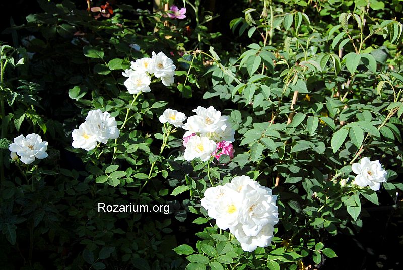 Krzew wielkości 50–60cm x 70–80 cm, dość gęsty, rozłożysty, szybko zakrywa glebę. Jego kwiaty są pełne z wyraźnym żółtym środkiem pylników. Średnica kwiatu 7-8 cm. Kwitnie w dużych pękach kwiatów (do 15 sztuk), które dośc długo utrzymuja się na krzewie. Po krótkiej przerwie kwitnie obficie do jesieni. Z lekko kremowego pąka otwiera się czysto biały kwiat. Odznacza się dobrym zdrowiem. Zaskakująco dobrze rośnie na słabej, piaszczystej glebie. Kwitnie obficie juz od pierwszego sezonu po posadzeniu. Liście ciemnozielone, zdrowe. Jedyna wada tej odmiany to słaby zapach. Piękna dekoracja ścieżek, obwódek lub brzegu rabaty. Bardzo dobrze rośnie w donicach. Polecam sadzenie 4 szt/m2. Jedna z moich ulubionych białych róż! 🙂