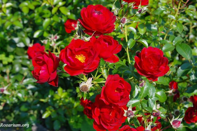 obficie kwitnąca odmiana o najwyższej odporności na choroby. Kwitnie półpełnymi kwiatami w pękach w kolorze ciemnej czerwieni. Kwiaty o średnicy 6 cm rozwijają się z kulistych pąków. Kwitnienie ciągłe od lipca do października. Krzew osiąga wysokość ok. 40- 50 cm – idealny na nasadzenia dywanowe. Liście bardzo zdrowe, błyszczące. Nie wymaga oprysków ochronnych przeciw chorobom grzybowym.