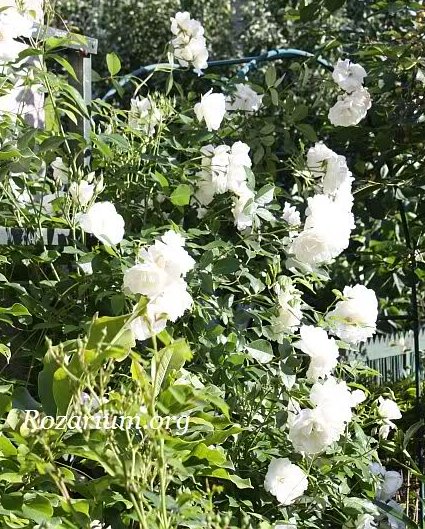 Kolor biały jest symbolem niewinności i czystości. Rabata obsadzona białymi różami sprawia wrażenie delikatności i elegancji. Białe róże sadzimy też po to by dodać lekkości lub złagodzić intensywna mieszankę innych barw. Białe kwiaty mają jednak główną wadę jaką jest wrażliwość na deszcz. Podczas podwyższonej wilgotności i słoty na białych płatkach powstają ciemne plamy i przebarwienia czego nie sposób uniknąć. Pozostaje nam wtedy oczyszczenie krzewu ze zniszczonych kwiatów i czekanie na kolejną falę kwitnienia. Jednak nie chciałabym nikogo zniechęcać tym faktem. Te wspaniałe róże warto uprawiać dla ich subtelnego piękna! 🙂