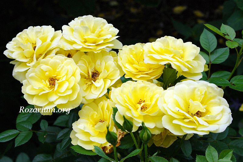 Żółta, półpełna, wielkość kwiatu 5-8 cm, 15-25 płatków, lekki zapach.