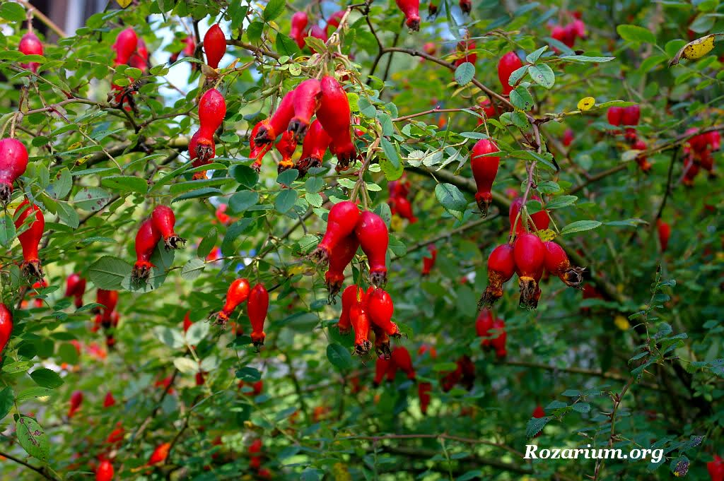 Największą ozdobą tej róży są wielkie owoce szupinkowe w kształcie buteleczek, w kolorze intensywnie czerwonym. Krzew w ciągu lata jest dosłownie oblepiony owocami. Można je przetwarzać w kuchni na dżemy, powidła i nalewki.