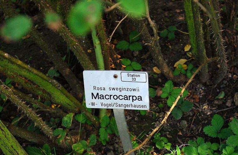Rosa sweginzowii Macrocarpa – róża dzika, botaniczna, wyselekcjonowana odmiana w Sangerhausen przez Vogla. Krzew parkowy, rozłożysty, bardzo duży do 5 m wysokości. Nie wybredny co do stanowiska i gleby.