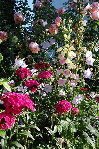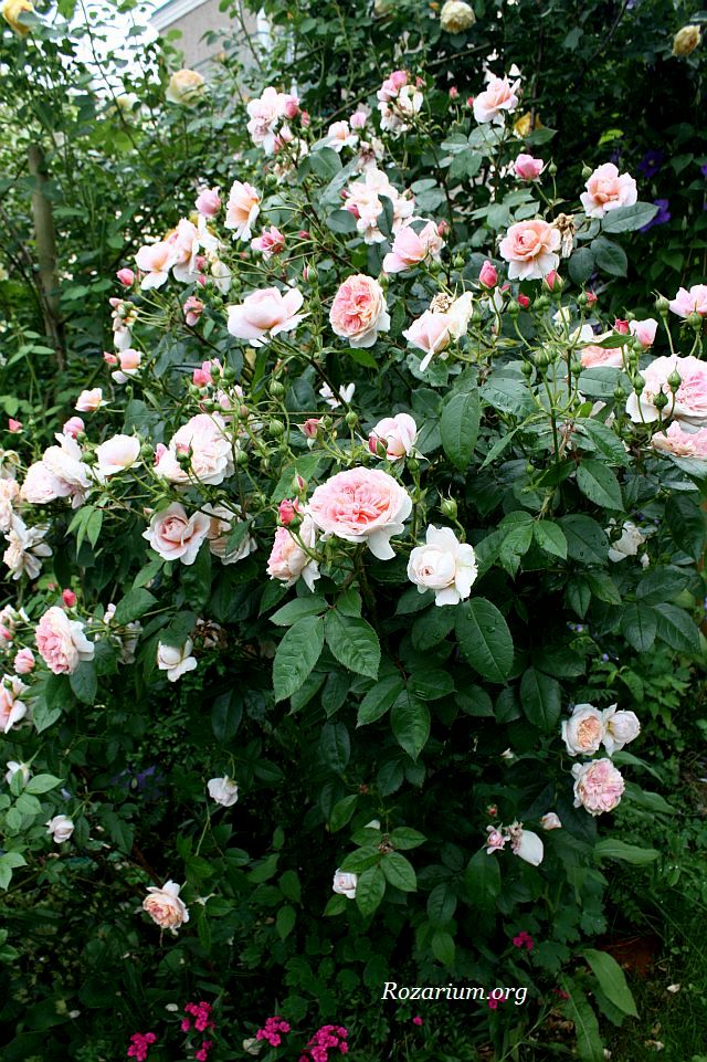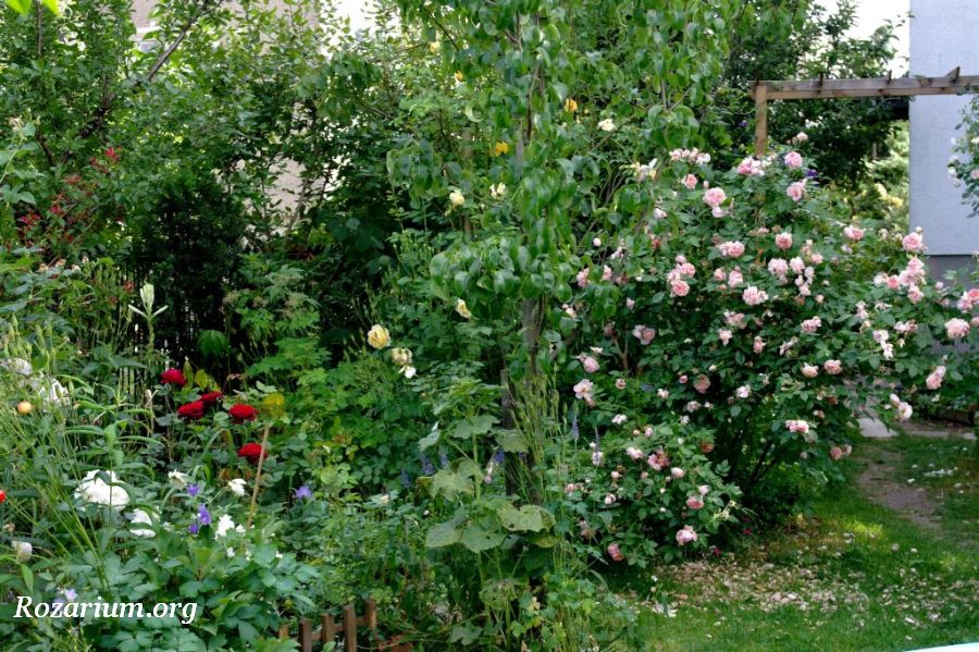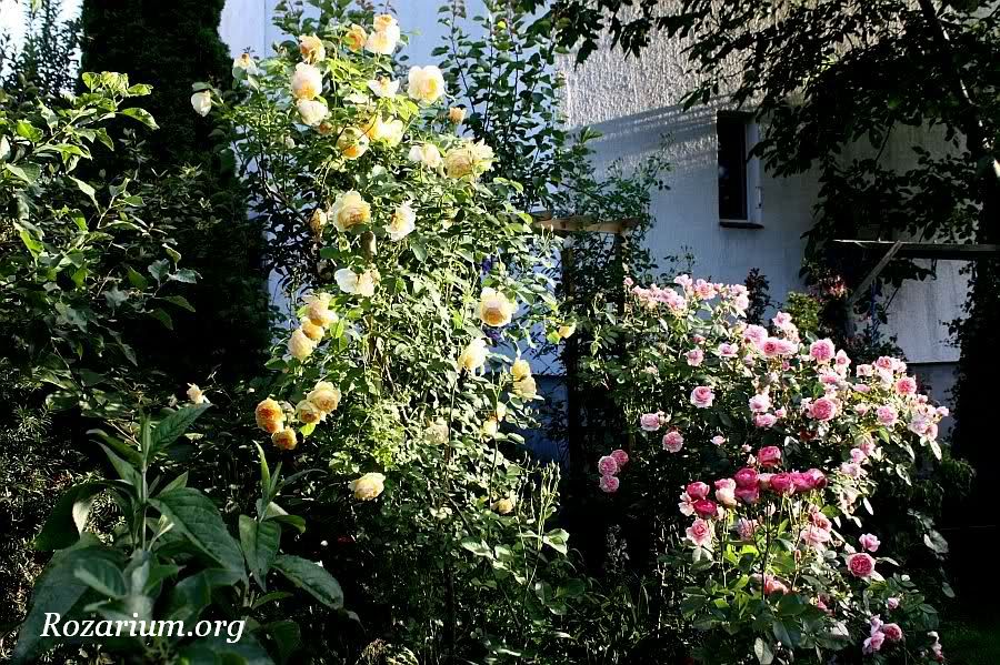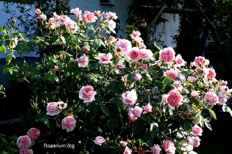 Róża parkowa, hodowca Kordes 1951. Róża piżmowa/Hybrid musk. Lambertiana. Krzyżówka: Hamburg x Verdun. Bardzo zdrowa i witalna odmiana odznaczona ADR w 1950 roku. Jedna z najsilniej rosnących i najobficiej kwitnących róż w moim ogrodzie. Kwiaty średnicy 5 cm i 20 płatkach, intensywne ciemnoróżowe rozwijają się w bardzo dużych pękach (do 40 sztuk) i bardzo długo utrzymują się na pędach. Zapach delikatny, piżmowy. Kwitnienie jesienne w intensywniejszych kolorach. Liście średniej wielkości, błyszczace. Pokrój krzewu rozłożysty, pędy przewieszają się na boki. Wysokość i szerokość dorosłego krzewu – 2m. Strefa mrozoodporności 4-9 USDA. Przetrwała już 10 zim bez większych uszkodzeń mrozowych (jedynie czubki pędów trzeba podciąć wiosną). Wyjatkowa odmiana pod każdym względem! Nie wymaga szczególnej pielęgnacji. Równie dobrze rośnie na gorszych stanowiskach i w półcieniu. Rośnie u mnie zdrowo, bardzo rzadko choruje, tylko podczas długotrwałych upałów zdarza się mączniak właściwy na końcach pędów. Ogólnie bezproblemowa róża, wymagająca minimum zabiegów pielęgnacyjnych. Polecam szczególnie dla poczatkujących miłośników róż.