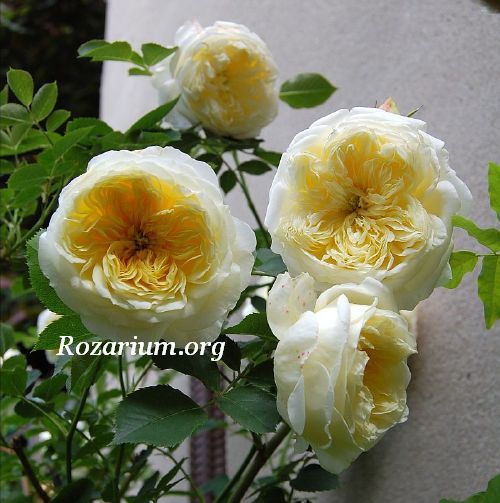 Znana w Europie od 1597 r. to jedna z najstarszych róż ogrodowych. Jest prawdopodobnie mieszańcem R. canina var. dumetorum i R. gallica. Rośnie silnie do 3 m wysokości. Pędy ma wzniesione, zielone z haczykowatymi kolcami różnej wielkości. Listków jest 5, szeroko eliptycznych, od spodu owłosionych, pojedynczo ząbkowanych. Ogonek liściowy owłosiony. Przylistki wysoko przyrośnięte, całobrzegie.