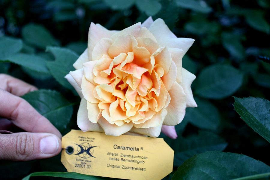 Kolor jasny bursztynowy, lekki zapach, kwiat bardzo duży o średnicy 10 cm, pełny o pofalowanych płatkach. Krzew wysokości 120-150 cm i 70 cm szerokości. Duża odpornośc na choroby.
