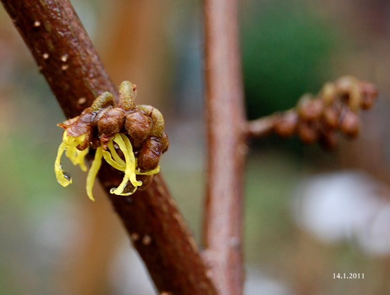 Ten rzadki a niezwykle atrakcyjny krzew ozdobny zakwita, jako pierwszy w roku. Podczas zimowego ocieplenia, kilku dni z dodatnią temperaturą rozwiają się żółte, cienkie płatki. Kwiaty oczarów mocno pachną. Znoszą nawet spore mrozy, zwijając się do środka. Po ponownym ociepleniu na nowo sie otwierają. Kwitną długo od stycznia do marca.